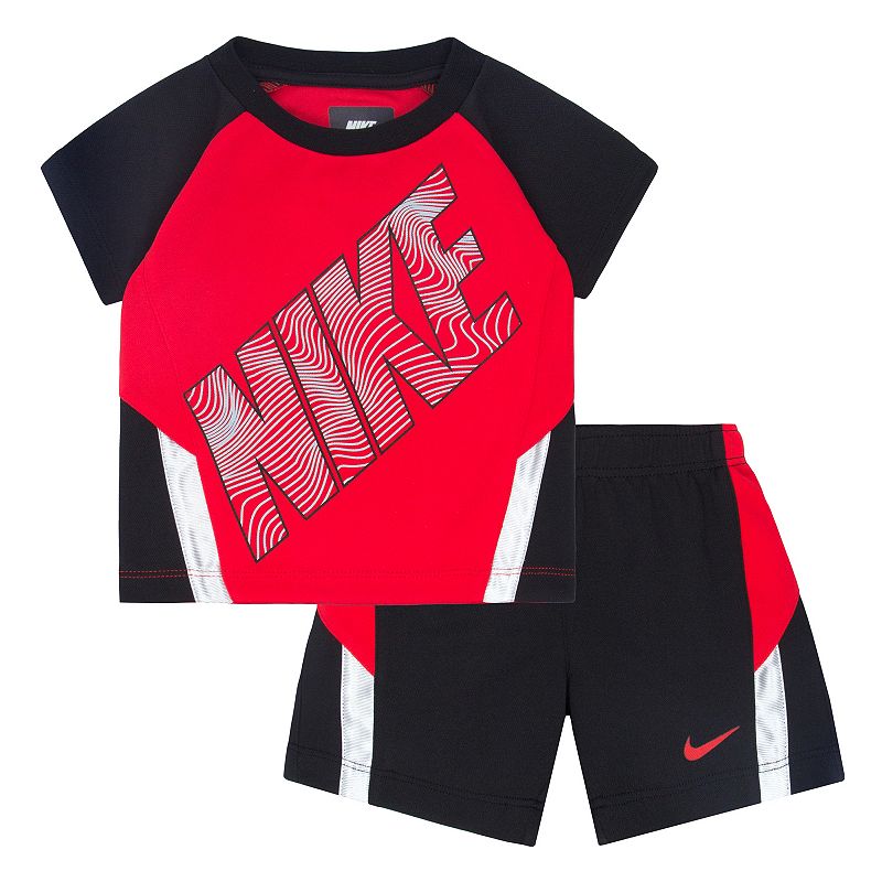 Dress him like a winner with this boys' Nike coordinating short and shirt set, featuring breathable mesh fabric that's sure to keep him cool during any activity