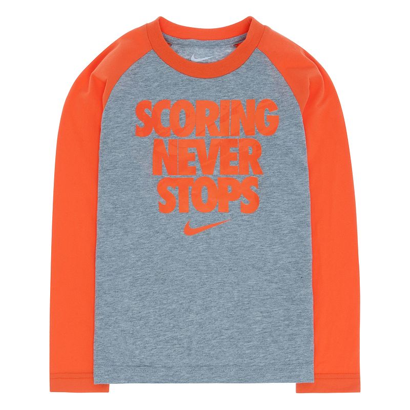 Scoring Never Stops and neither will his play in this comfortable boys' Nike raglan tee