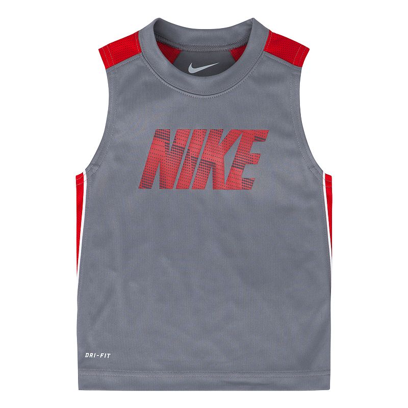 Featuring ventilated mesh piecing along the shoulders, under the arms and down the sides, this boys' Nike muscle tank is sure to keep him cool, dry and comfortable in a style that gives him the mobility he needs